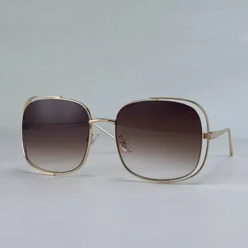 Oversized Square Metal Frame Sunglasses for Women UV400 Vintage Travel Shades