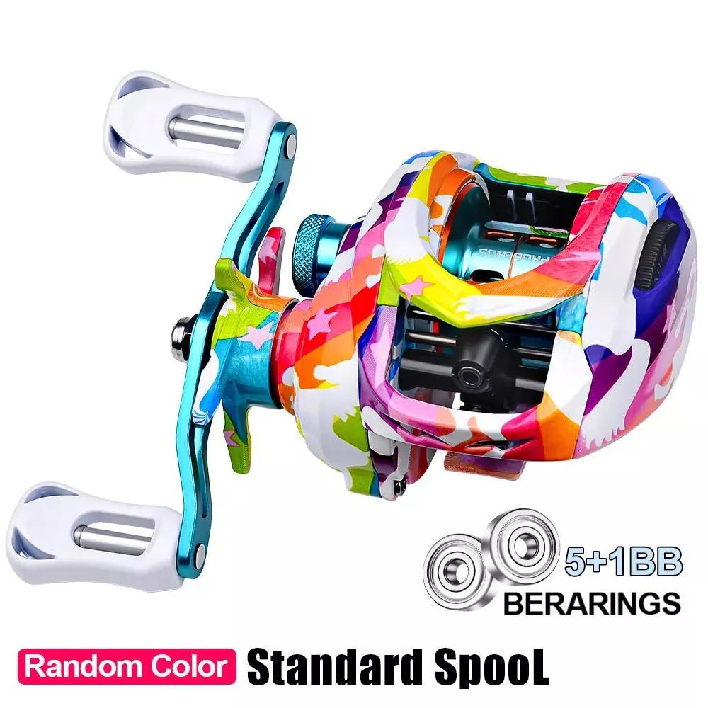 Take your fishing game to the next level with this ultra-light baitcasting reel, designed for both left and right-handed anglers. With a high-speed 7.2:1 gear ratio and a smooth 5+1 ball bearing system, this reel gives you the edge whether you’re casting into a quiet lake or battling the currents off the ocean rocks. Compact yet powerful, it’s engineered to deliver long casts, smooth retrieves, and ultimate control — all without weighing you down.