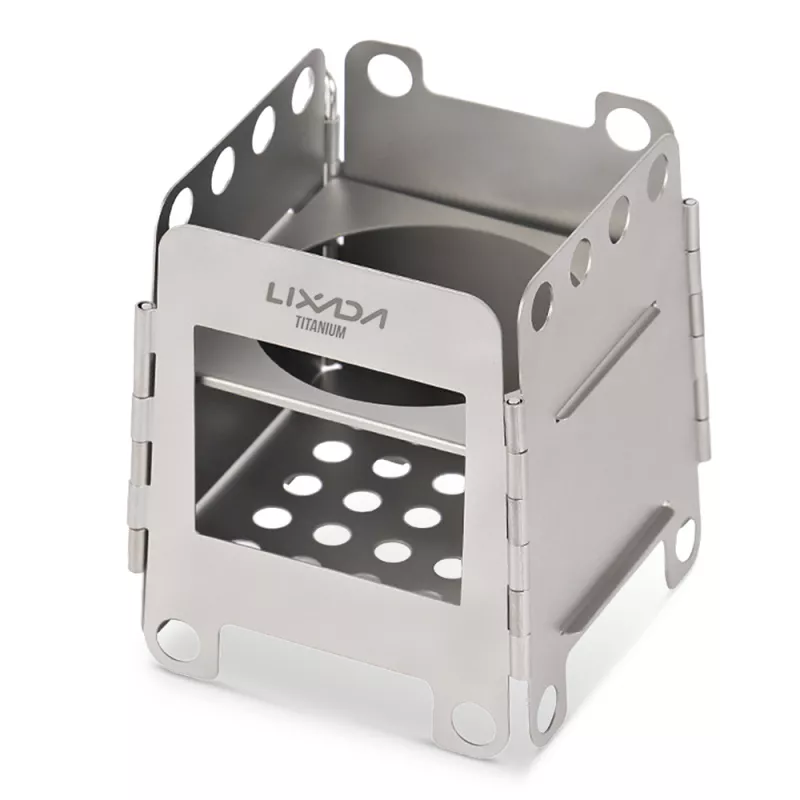 Ultralight Folding Titanium Wood & Alcohol Stove for Camping & Backpacking