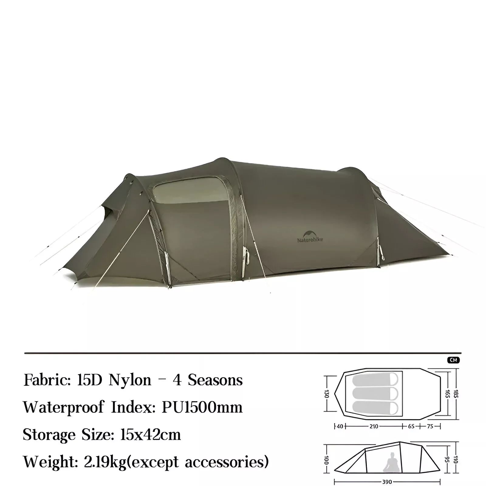 Hit the trails with confidence and comfort with this ultralight tunnel tent, designed for backpackers and hikers who refuse to compromise on space, weather protection, or portability. Whether you’re heading out for a weekend in the wild or embarking on a multi-day trek, this 4-season tent delivers reliable shelter for up to 3 people with room to breathe.
