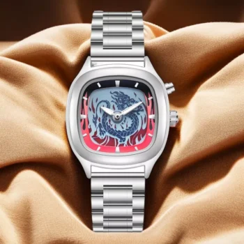 Multi-Color Flame Dragon Dial Stainless Steel Waterproof Watch
