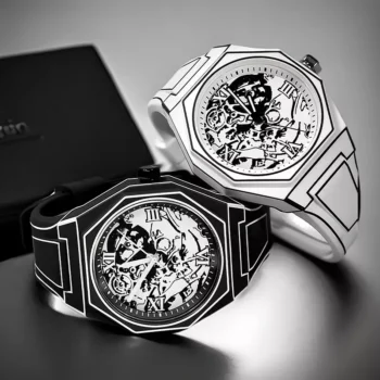 Minimalist Unisex Transparent Dial Quartz Watch – Black & White