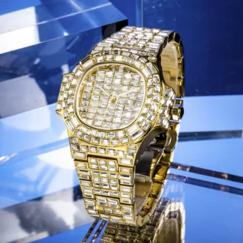 Luxury Iced Out Diamond Men’s Stainless Steel Waterproof Quartz Watch