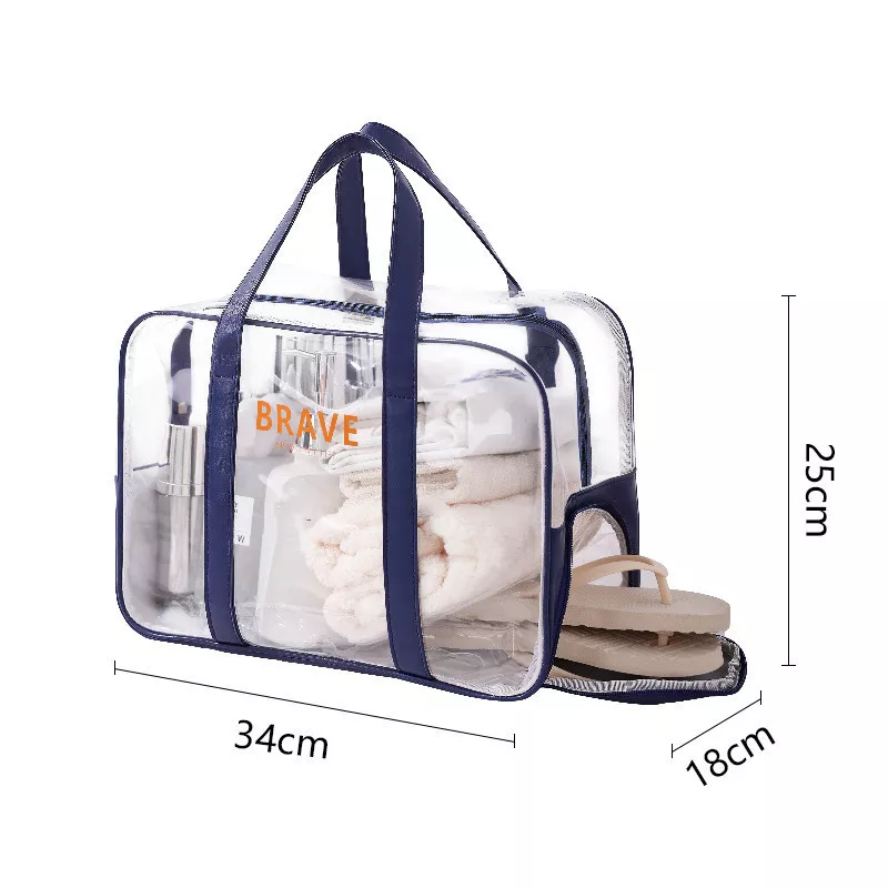 Waterproof Transparent PVC Beach & Travel Tote with Shoe Compartment