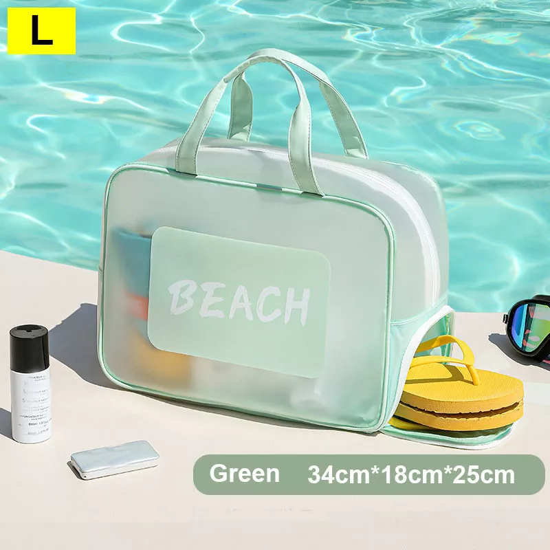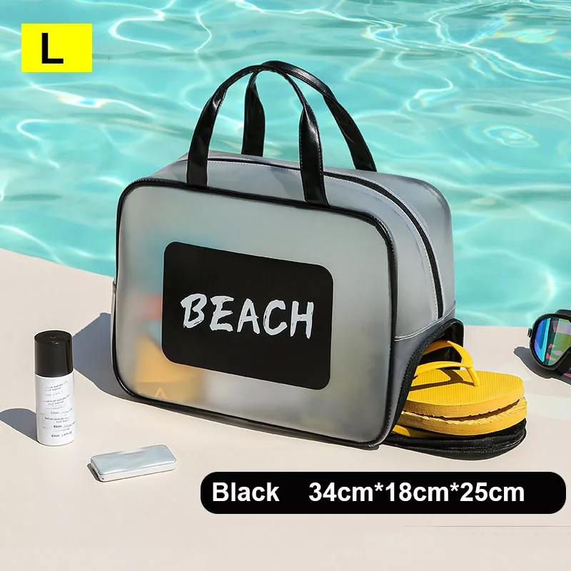 Make every beach day, pool trip, or gym session effortlessly organized with this Portable Waterproof Transparent Swimming Tote Bag. Whether you’re carrying swimsuits, towels, shoes, or toiletries, this sleek and durable PVC handbag keeps your items protected, separated, and easy to find. Its modern transparent design lets you quickly identify contents while the waterproof material keeps wet and dry items neatly apart.