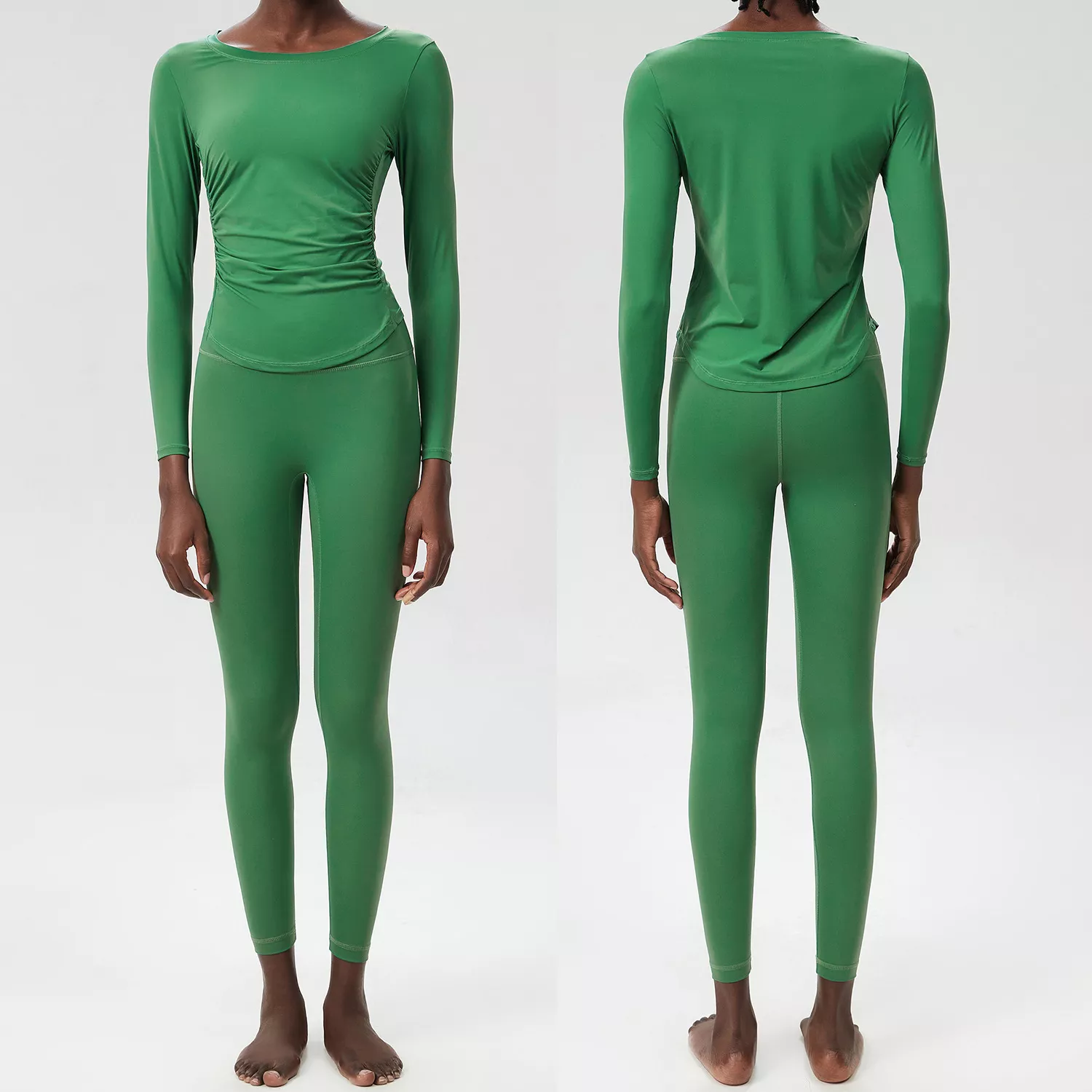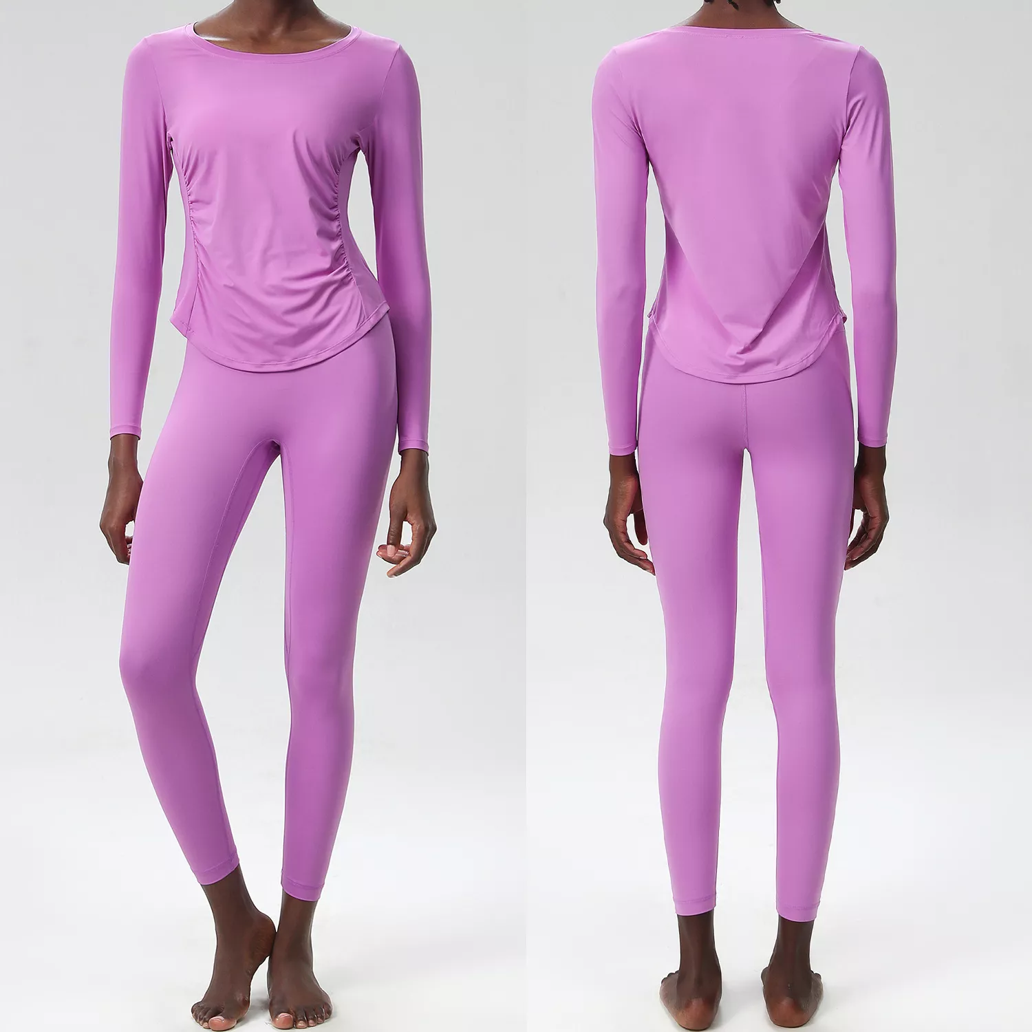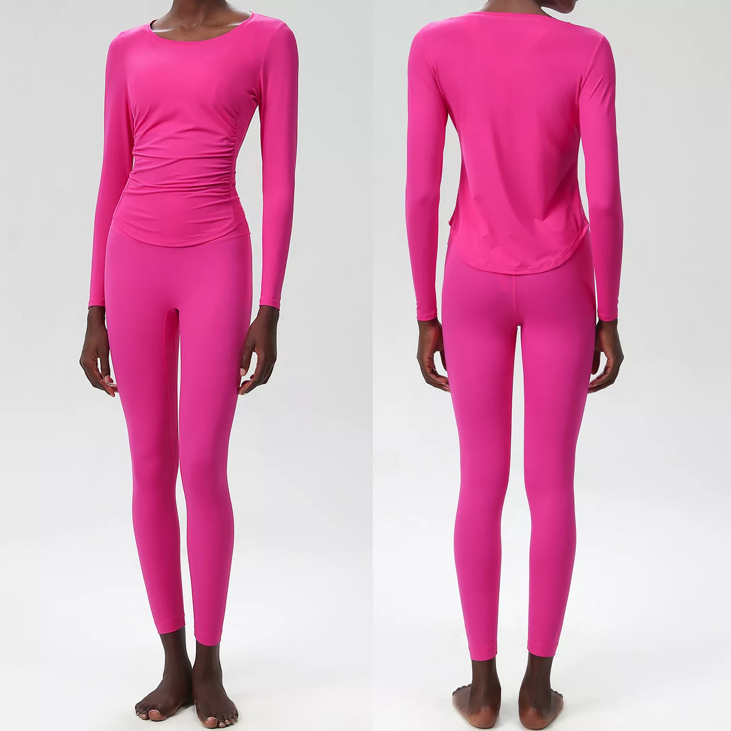 This set includes a long sleeve crop top and matching high-waisted leggings — both crafted with a sleek, minimalist design and a solid color finish for a modern athletic look. With four-way stretch and excellent recovery, the fabric holds shape while allowing total freedom of movement. Plus, it’s anti-pilling, anti-shrink, and resists wrinkles, so it always looks fresh, no matter how hard you go.