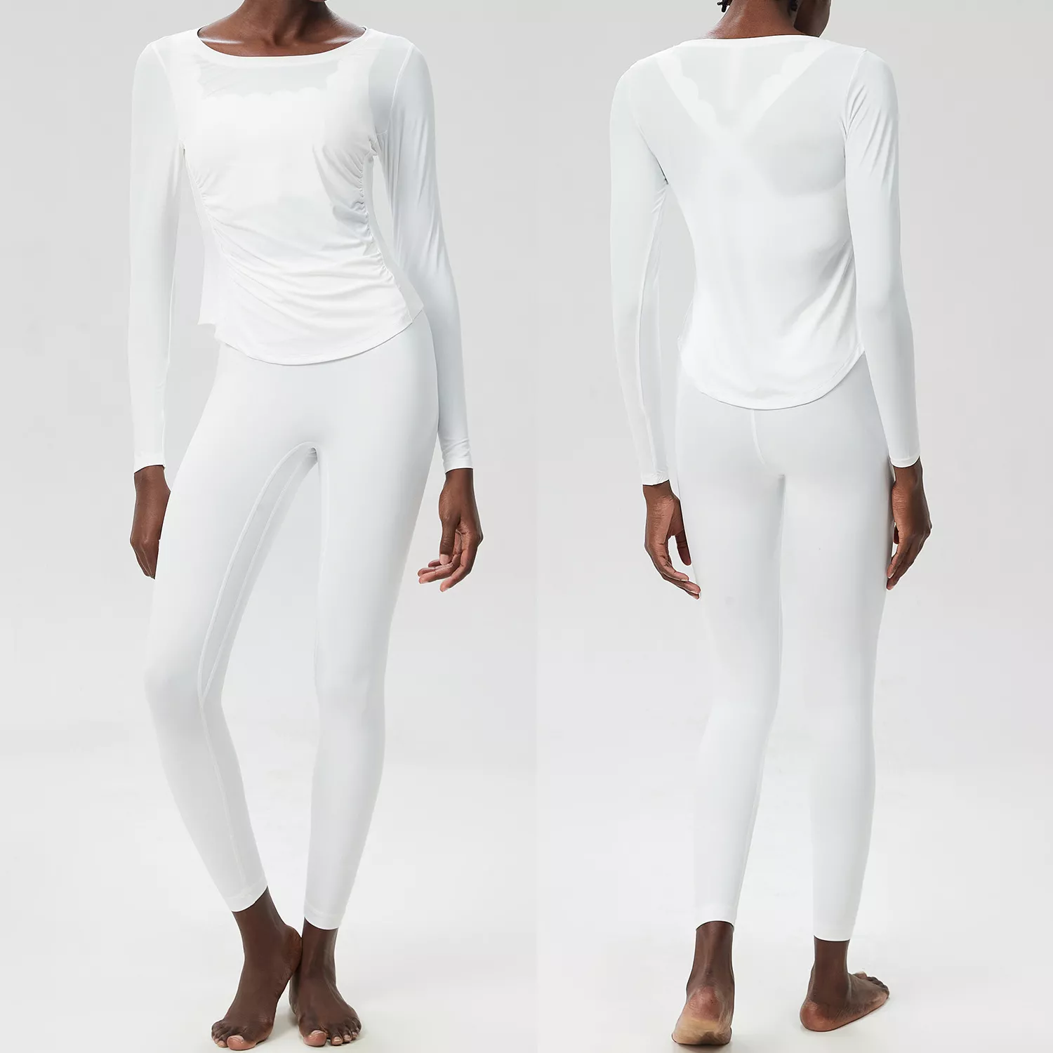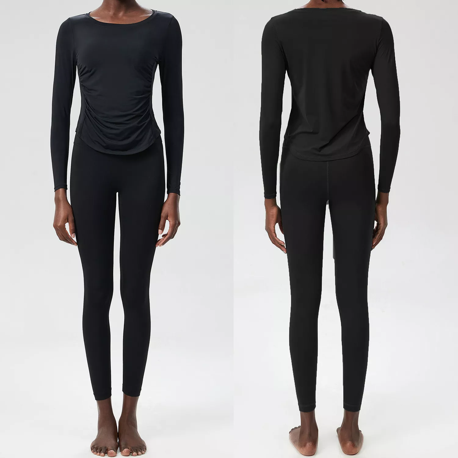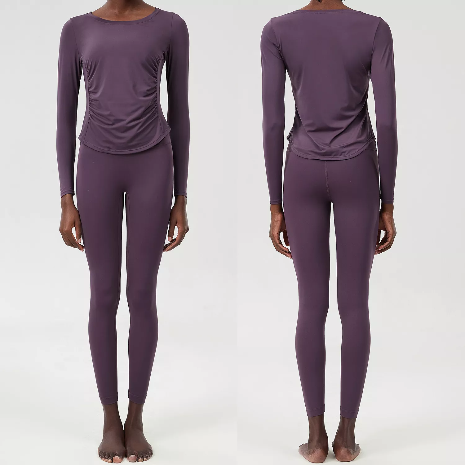 This set includes a long sleeve crop top and matching high-waisted leggings — both crafted with a sleek, minimalist design and a solid color finish for a modern athletic look. With four-way stretch and excellent recovery, the fabric holds shape while allowing total freedom of movement. Plus, it’s anti-pilling, anti-shrink, and resists wrinkles, so it always looks fresh, no matter how hard you go.