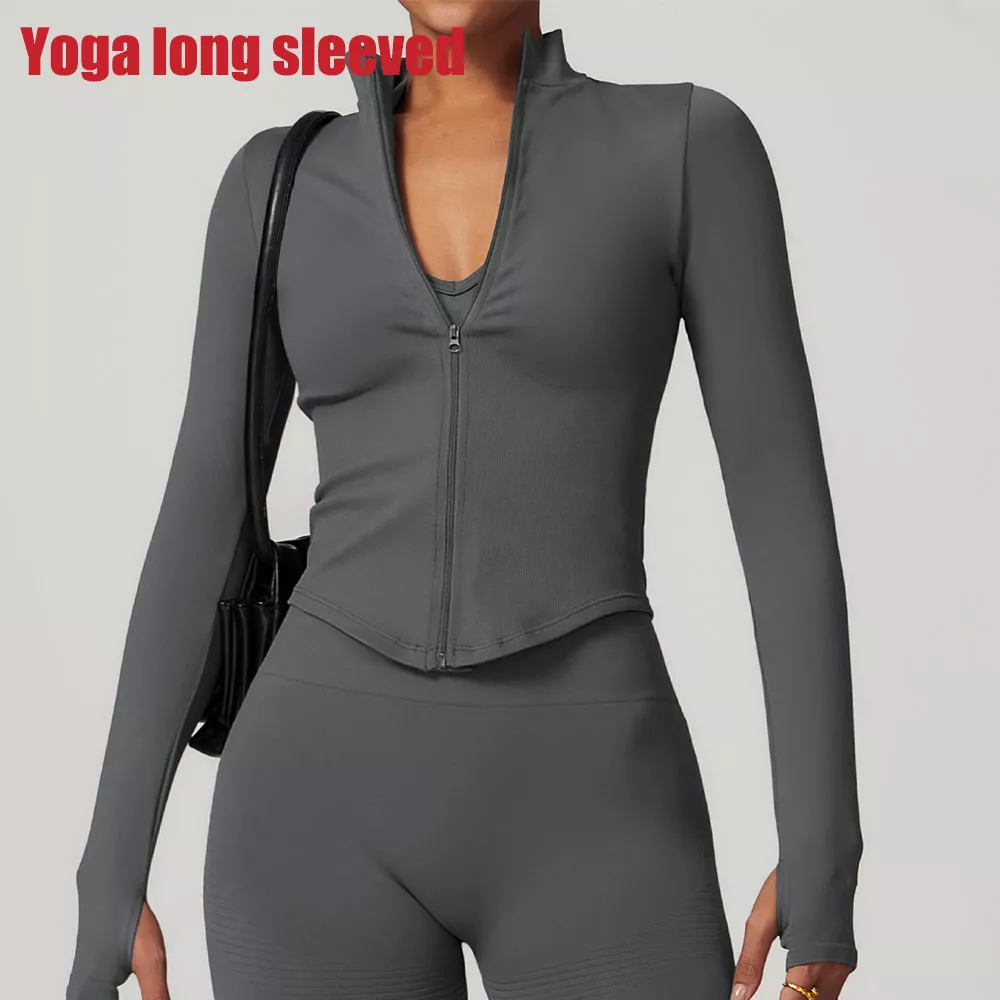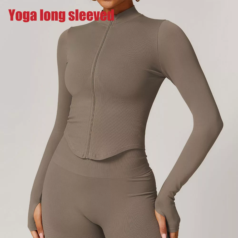 Women’s Quick-Dry Zipper Crop Top – Long Sleeve Yoga & Fitness Shirt