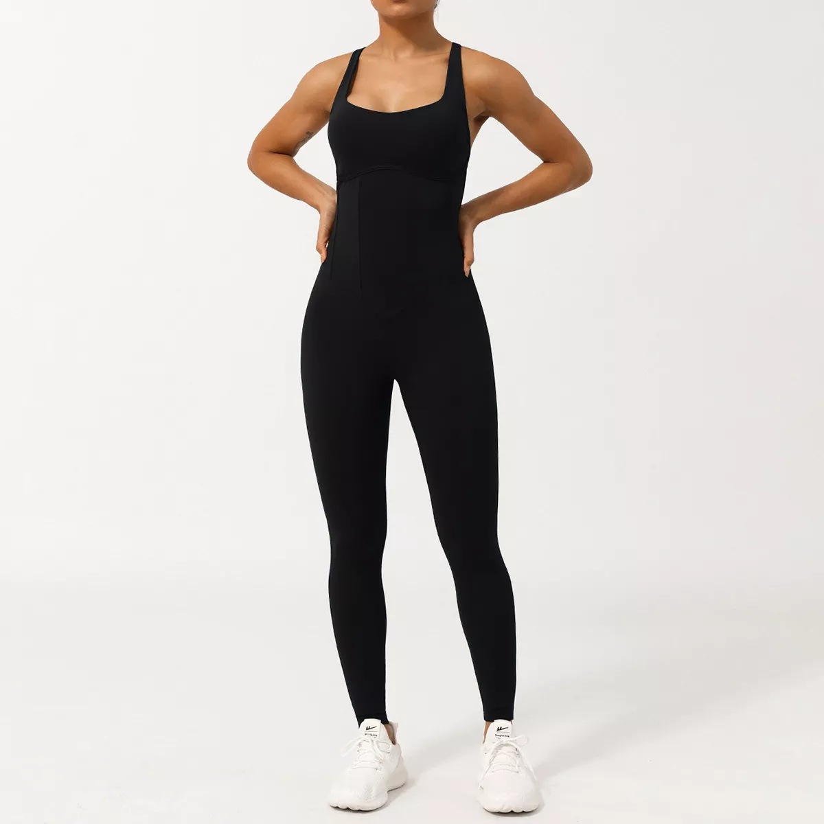 Made from a premium blend of nylon and spandex, this breathable, quick-drying jumpsuit feels buttery-soft against your skin and stretches seamlessly with your body. Its sleeveless design and slim-fit silhouette offer a sculpted look while ensuring maximum freedom of movement. No need to fuss with multiple layers—this one-piece wonder is a grab-and-go essential for busy, active women who want to look as strong as they feel.