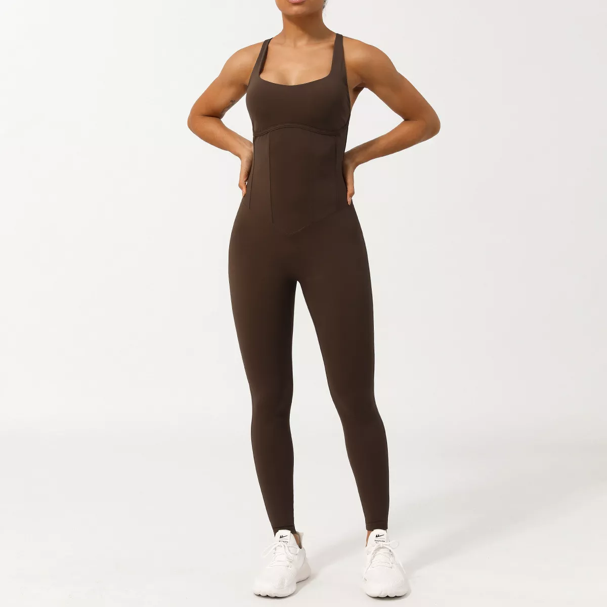 This jumpsuit isn’t just another fitness outfit—it’s a statement of strength, style, and simplicity. The solid color options (Black, Beige, and Coffee) offer timeless appeal and easy pairing with your favorite sneakers or accessories. From sunrise yoga to afternoon errands, it’s your all-day, all-purpose partner.