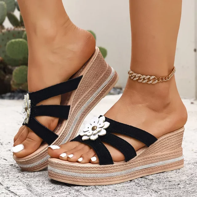 Turn heads and elevate your warm-weather wardrobe with these Summer Flowers Decor Wedge Heel Sandals. Designed for women who love to combine fashion with comfort, these platform slippers offer the perfect blend of elegance and ease. Whether you’re headed to a casual brunch, a sunset stroll, or a summer gathering, these slip-on sandals are your go-to pair for effortless charm and all-day support.