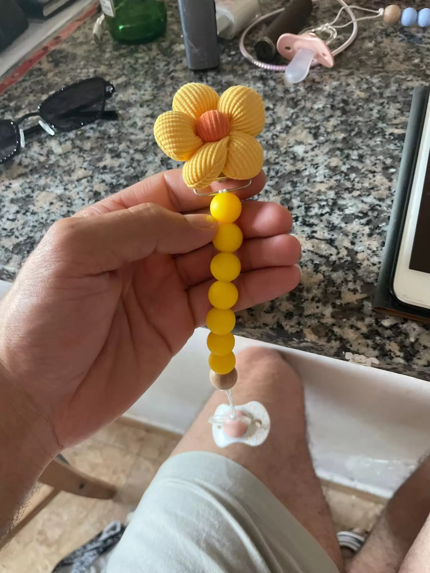 • Handmade Quality: Each pacifier chain is carefully crafted by hand, ensuring a unique and high-quality product.