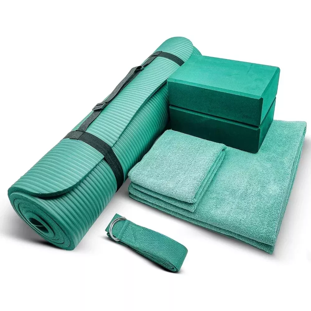 7-Piece Yoga Set for Home Workouts – Thick Mat, Blocks, Strap & Towels